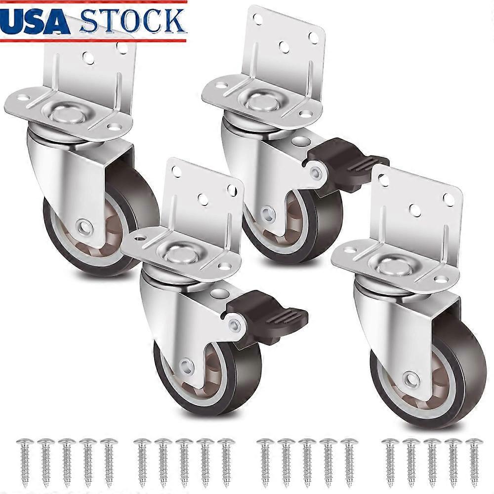 Heavy Duty 2 Inch Side Mount Casters Set of 4 Rubber Wheels 360 Degree Plate Swivel Casters Support 600 LBS Ideal Furniture