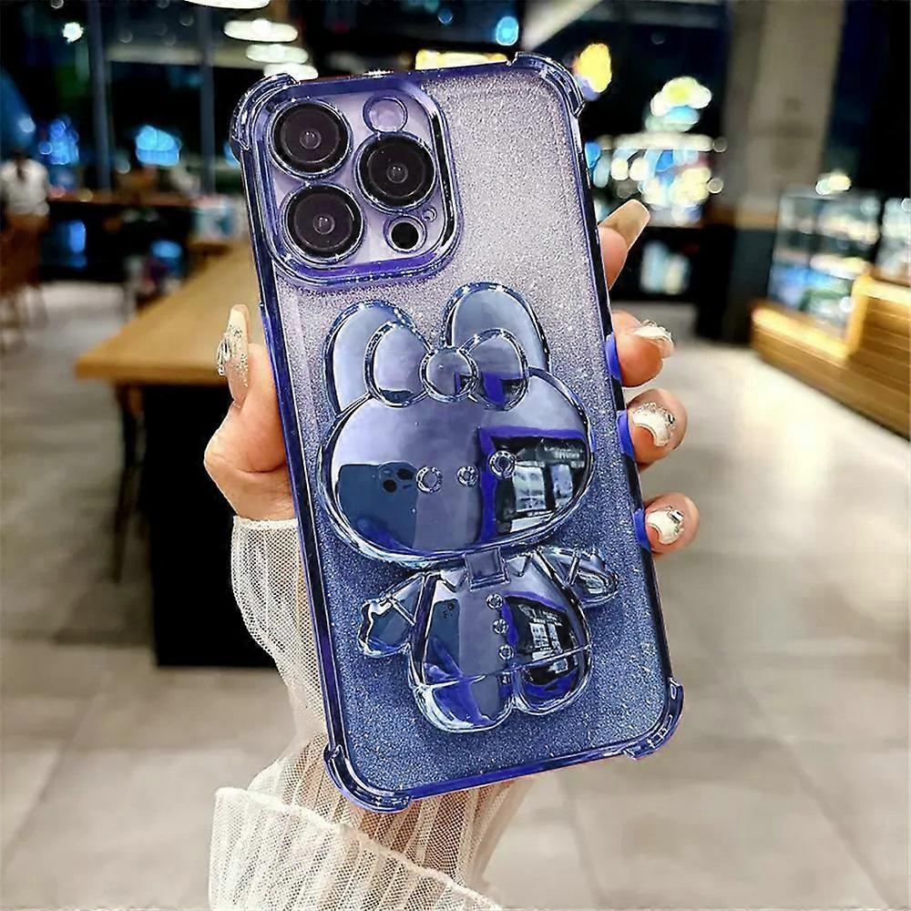 Case For Samsung S25 S24 S23 S22 S21 S20 Plus FE Ultra S25Edge Invisible Makeup Mirror Rabbit Stand Shockproof Glitter Soft Case