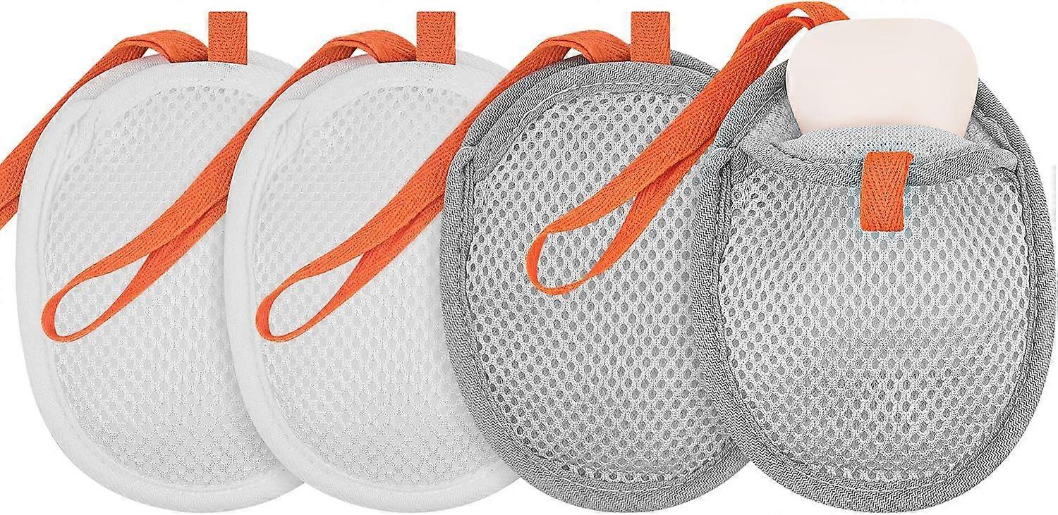 4 Pack Mesh Soap Saver Bags, Soaps Net Pouch, Adorable Washcloth Scrubber Holder for Soap Organiser, Women Men Travel Hiking Camping Shower Gym Bathro