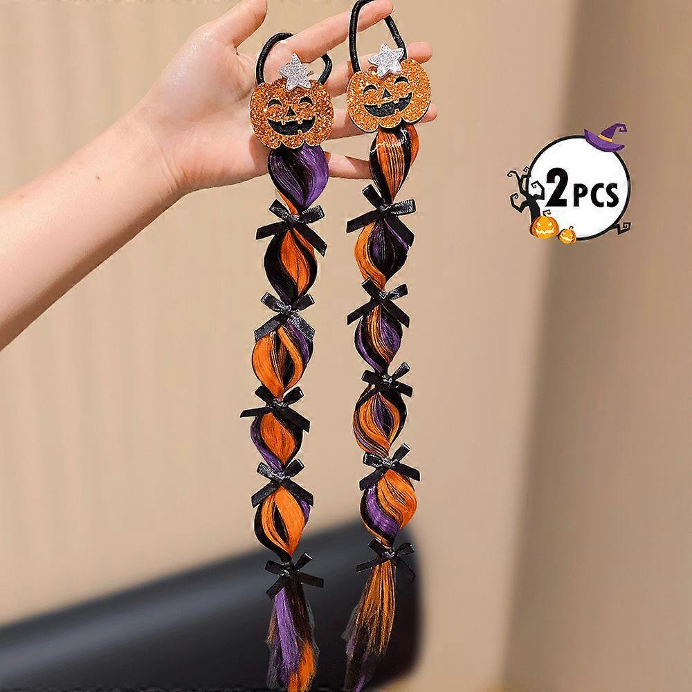 2-Pack Halloween Fashion Hair Ties And Wig Caps for Girls with Pumpkin And Spider Elements - Fun Accessory Set for Halloween