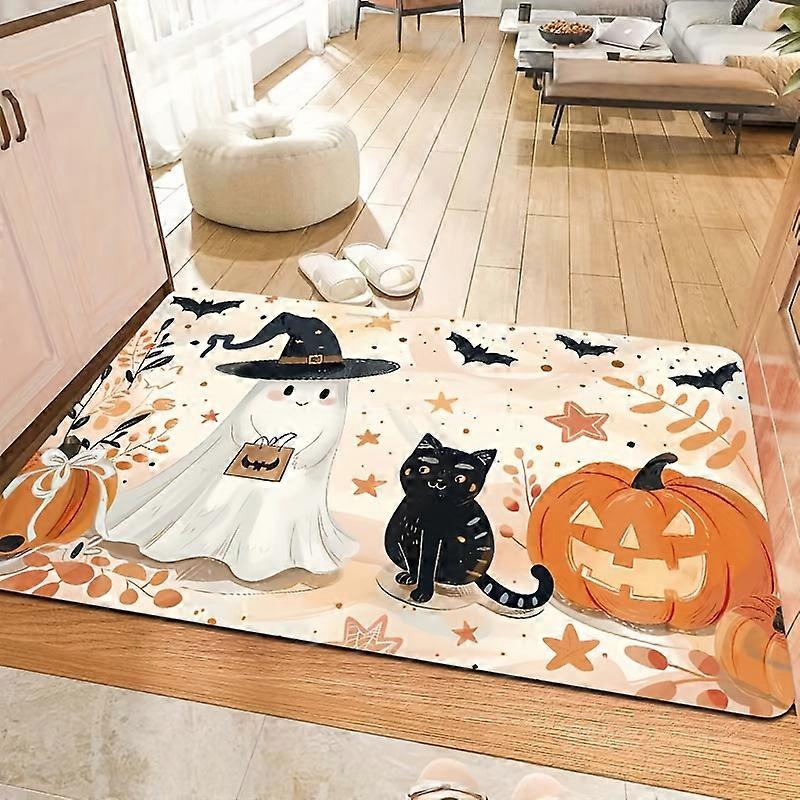 VIKAMA Halloween Pumpkin Bat Spider Web Pattern Floor Mat for Entrance of Hallway, Autumn Floor Mat for Home Decoration