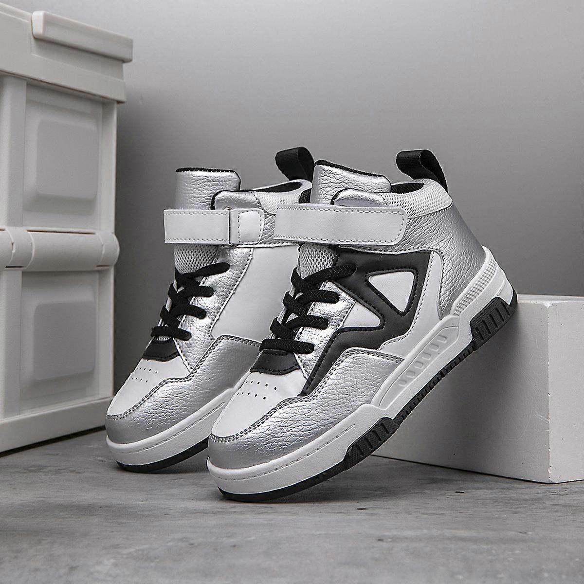 A pair of children's shoes, high top sports shoes, board shoes, PU leather upper, indoor and outdoor leisure running shoes, easy