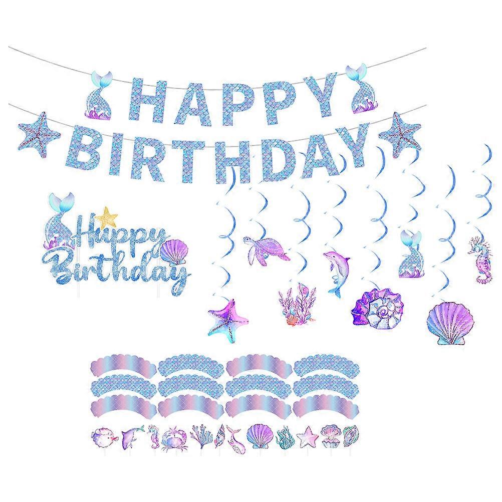 Birthday Celebration Party Supplies 5 Sets Ocean Theme Cake Decoration Assorted Color Easy Installation Party Decor