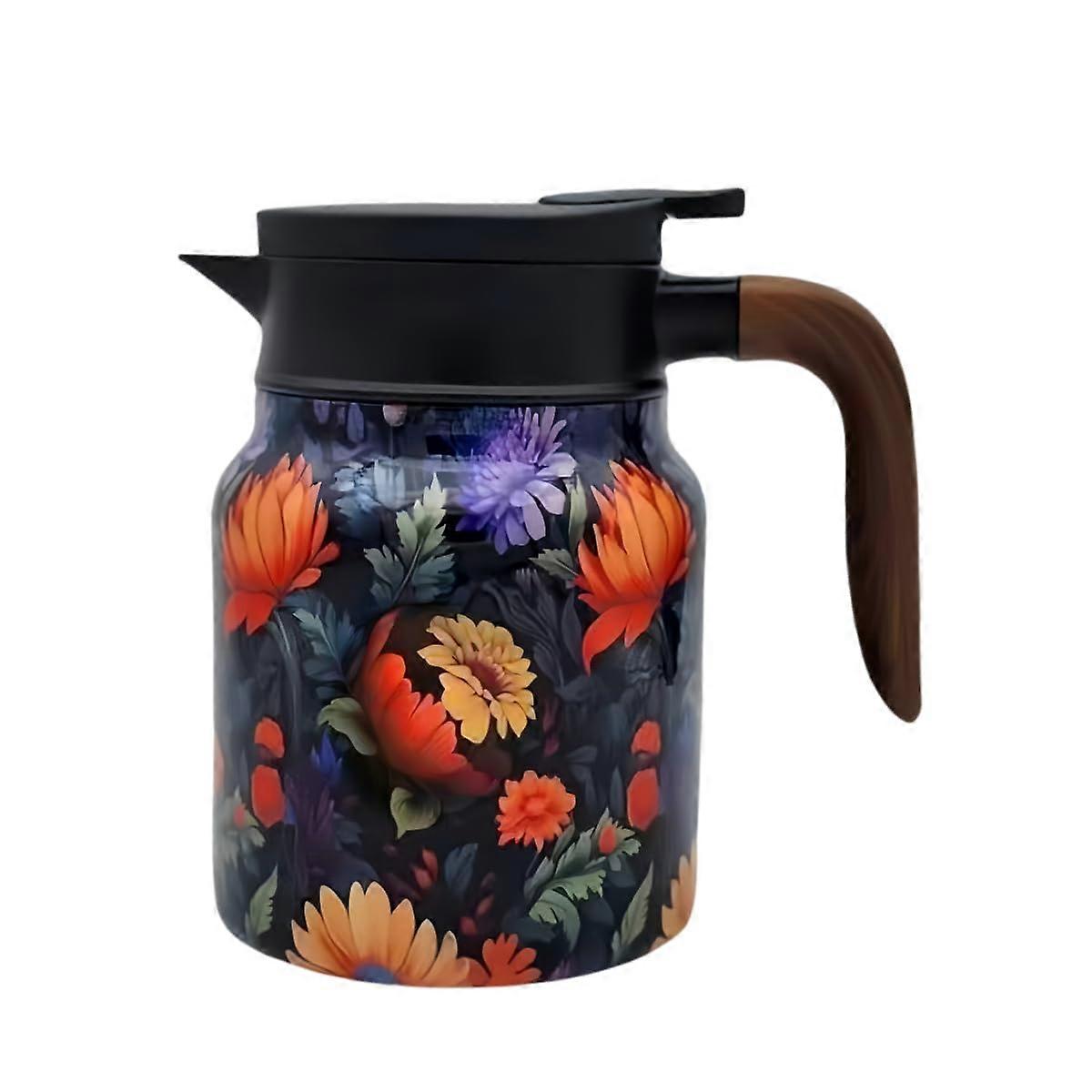 Thermal Teapot with Infuser 1000ml 316 Stainless Steel Vintage Floral Design for Long Heat Retention