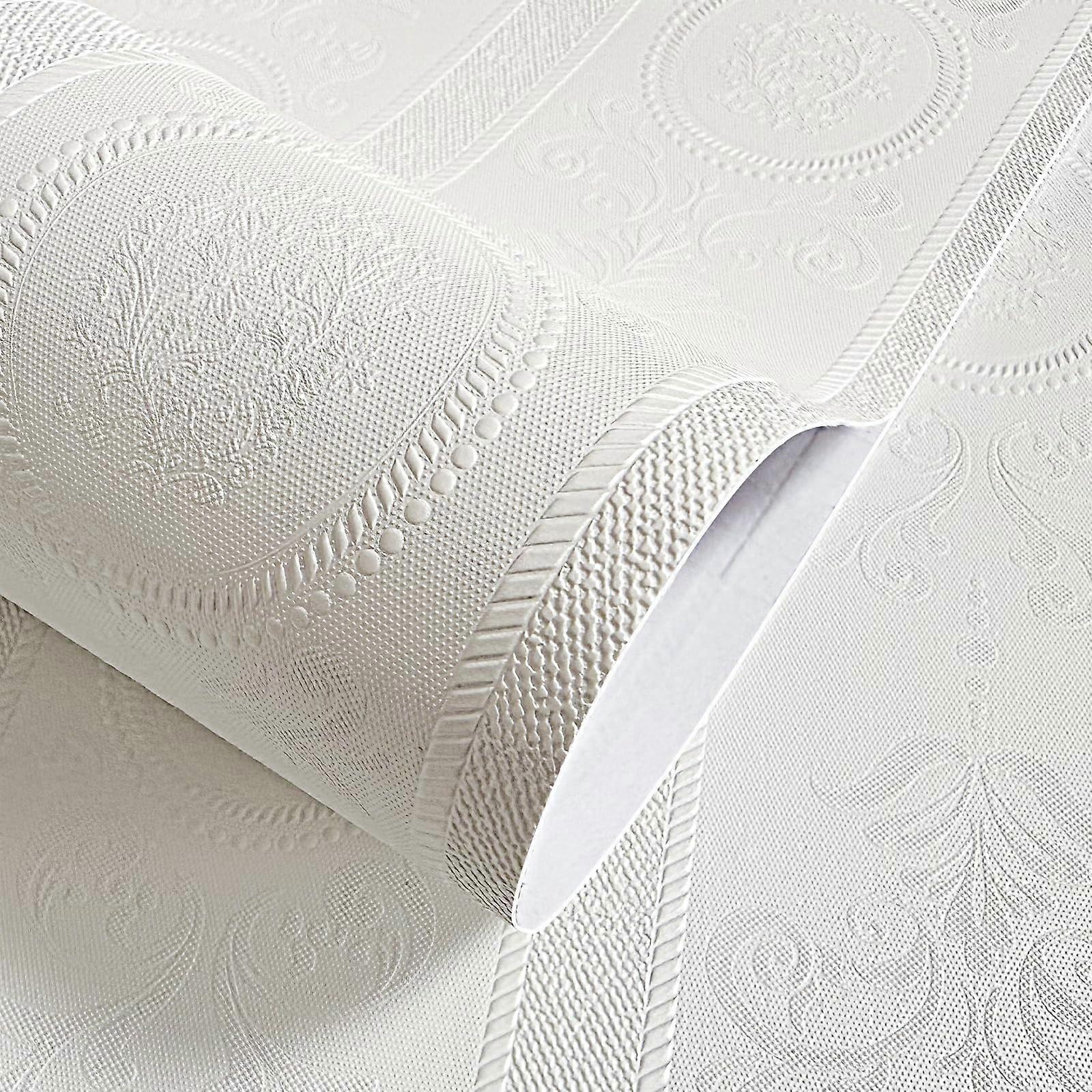 Peel and Stick Wallpaper 3D Embossed White Waterproof Textured Wall Covering Roll 17.3'x120'