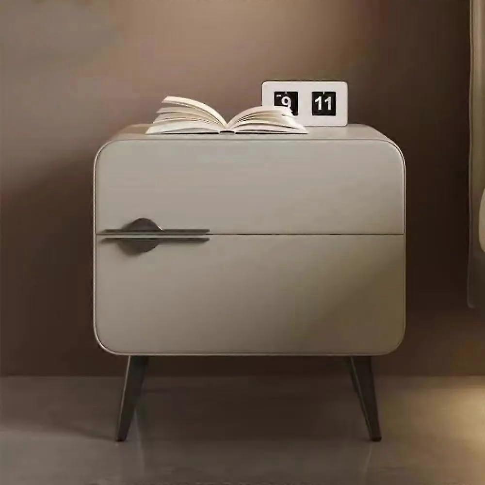 Modern Wood Nightstand with Elegant Storage Enhance the look and functionality of your space with this modern wood nightstand, designed to complement bedrooms, living rooms, and closets while offering practical organization solutions. Key Features and Benefits: Stylish Modern Design: Features a clean, contemporary look that blends seamlessly with a variety of interiors, making it an ideal choice for use as a bedside table, sofaside companion, or compact storage unit in closets. Its sleek lines and versatile style suit both minimal and decorative settings. Functional Storage Solutions: Comes with two spacious drawers fitted with smooth metal handles, providing ample room for everyday essentials such as books, electronics, items, and accessories. Helps keep your space organized and clutter without compromising style. Durable Construction: Built from quality wood for strength and longevity, supported by sturdy metal legs for enhanced stability and loadbearing capacity. Crafted to withstand daily use while maintaining its shape and finish. Luxurious Finish: Drawer fronts are wrapped in microfiber leather, offering a refined, softtouch surface that is easy to maintain and adds subtle elegance to the overall design. Practical Applications: 1. Bedroom: Use as a nightstand to keep lamps, alarm clocks, and reading materials within reach while storing items out of sight in the drawers. 2. Living Room: Place beside a sofa or lounge chair to hold drinks, remote controls, and decorative pieces while providing hidden storage for miscellaneous items. 3. Closet or Dressing Area: Ideal for organizing smaller wardrobe accessories such as jewelry, scarves, or cosmetics while serving as a stylish accent piece. Dimensions, materials, and construction are thoughtfully combined to deliver an attractive and practical storage solution suitable for a variety of settings. The modern design, reliable build, and refined finish make this nightstand a versatile addition to any home.