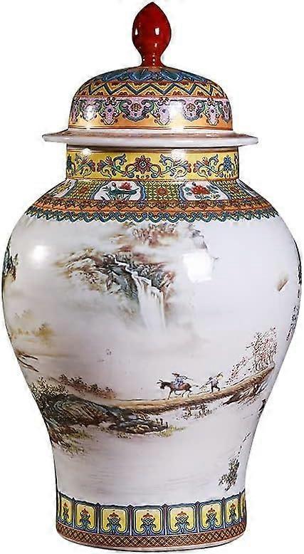 Ginger Jar Ceramic Vase with Lid, Jingdezhen Porcelain Decorative Jar for Elegant Oriental Home Decor