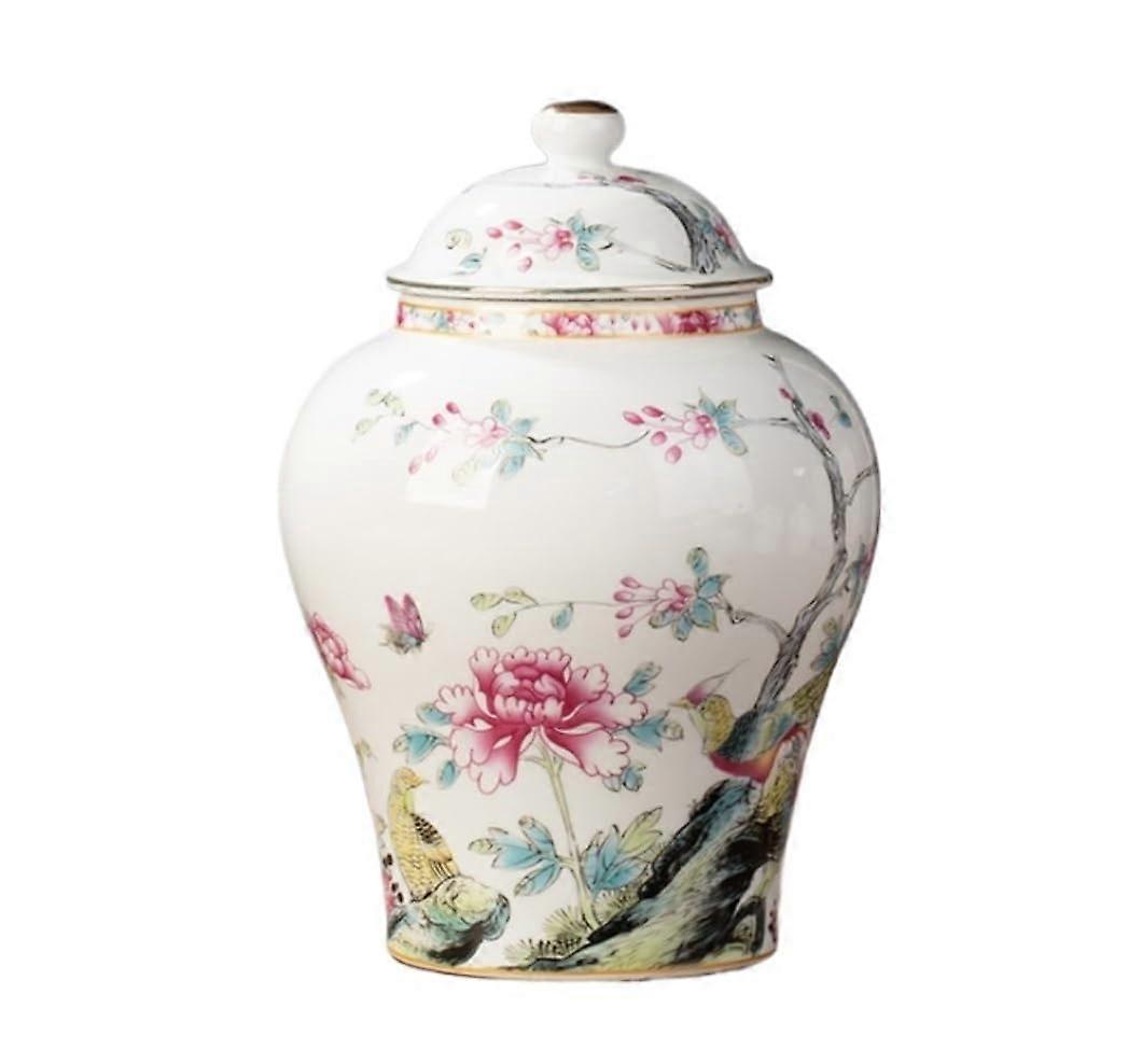 Blue and White Porcelain Ginger Jar with Lid, HandPainted Flower Vase 13x19.5cm Home Decor