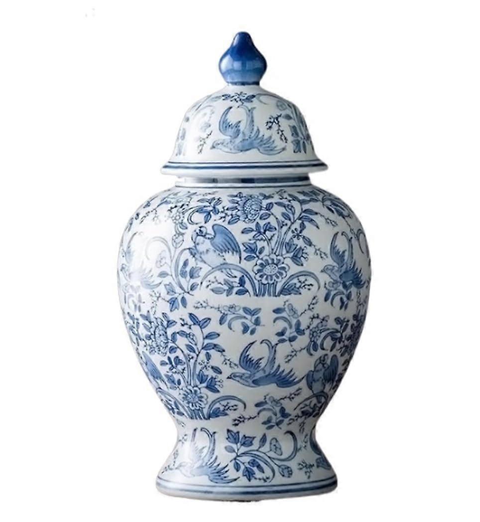 Blue and White Ginger Jar with Lid, HandPainted Porcelain Vase, Medium Flower Pattern Home Decor