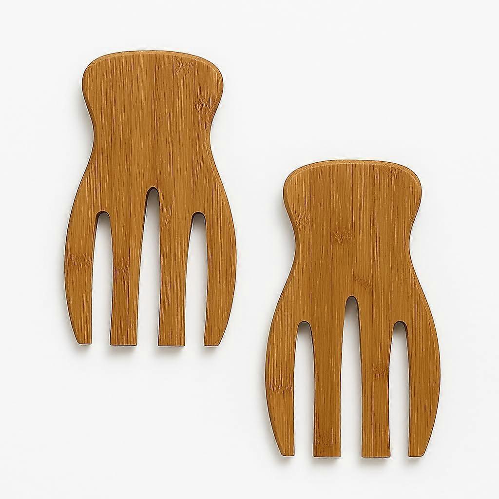 Bamboo Salad Servers Set of 2 with Ergonomic Thumb Grip, EcoFriendly 7 Inch Wooden Salad Hands