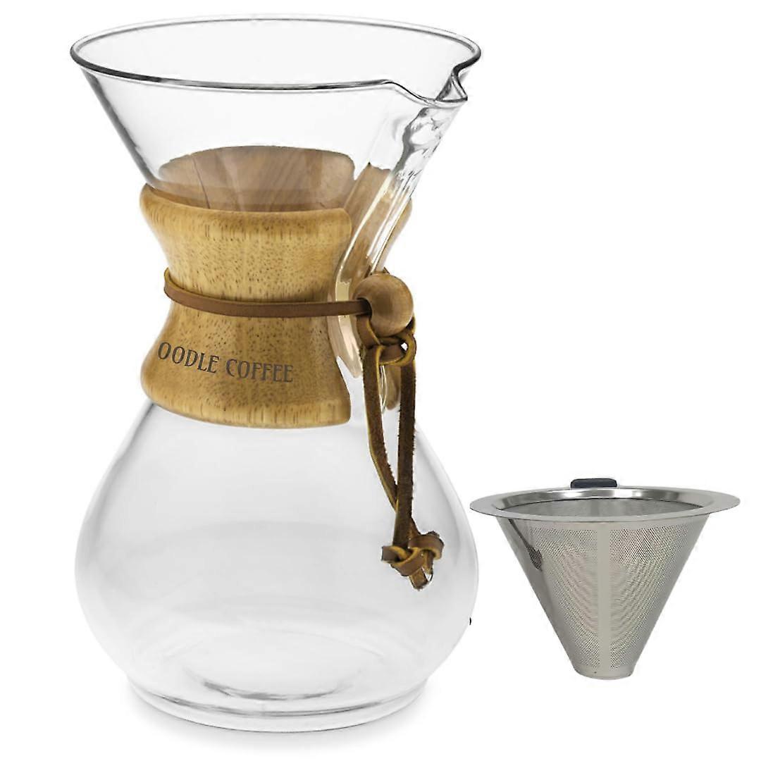 Pour Over Coffee Maker with Stainless Steel Filter, 600ml Heat Resistant Glass and Wood Collar