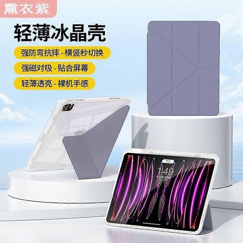 Case For Ipad Pro 11" 2024 Lavender Purple Tempered Glass Magnetic Folding No7048