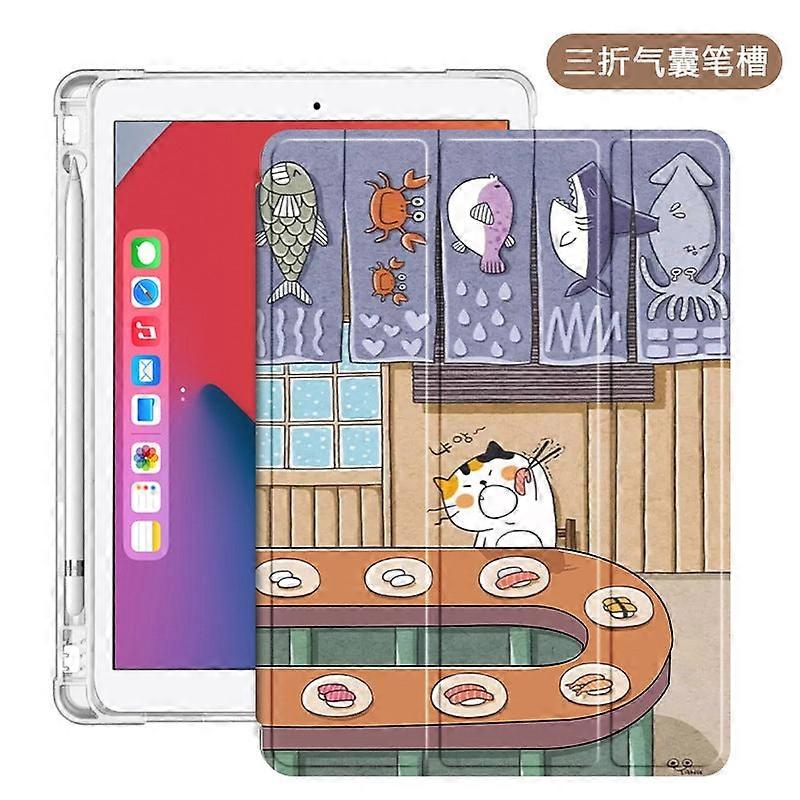 Case For Ipad 10.2" Tri-fold Airbag Pen Tray: Rotating Sushi Sleep Leather Tide Mini Silicone