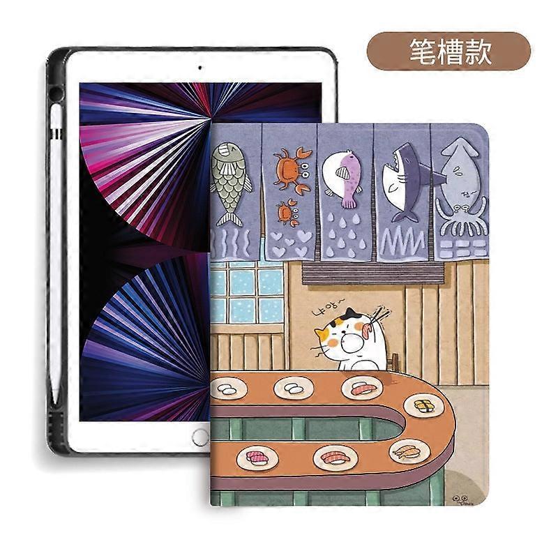 Case For Ipad 2025 11 11" Book Pen Slot: Convoluted Sushi Sleeping Leather Mini Silicone
