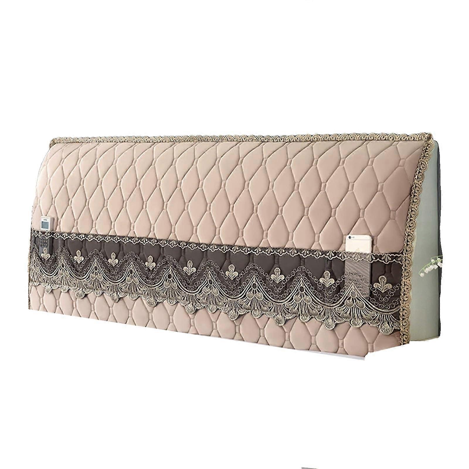 Headboard Cover Velvet Stretch with Pockets Plush Diamond Jacquard Protector Brown Small