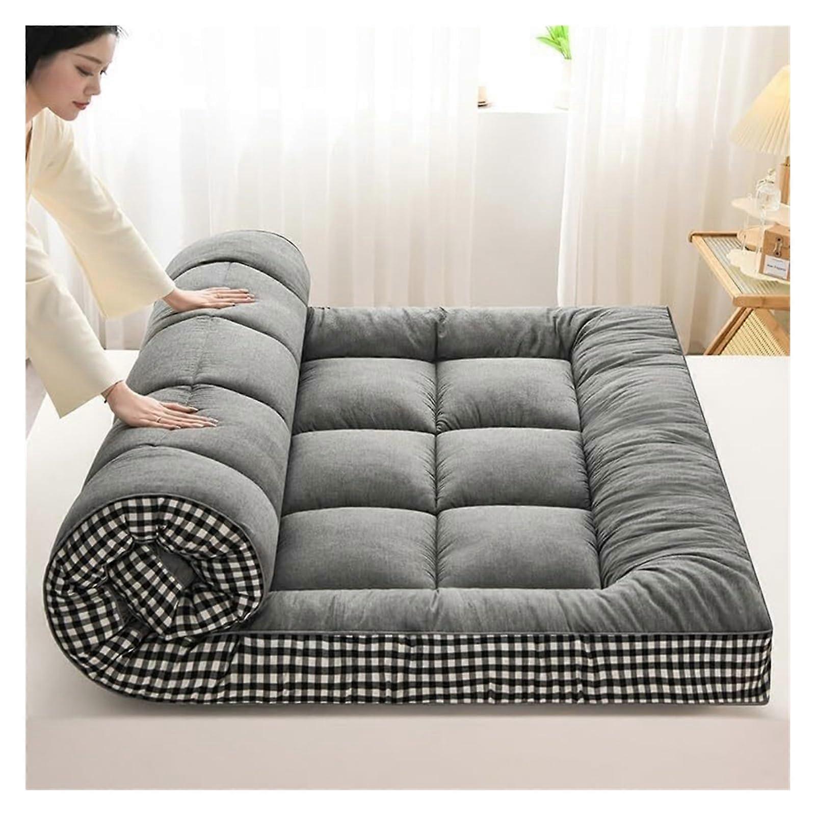 Upgrade Thick Futon Floor Mattress Twin Full Queen Foldable Roll Up Guest Bed Travel Pad Gray