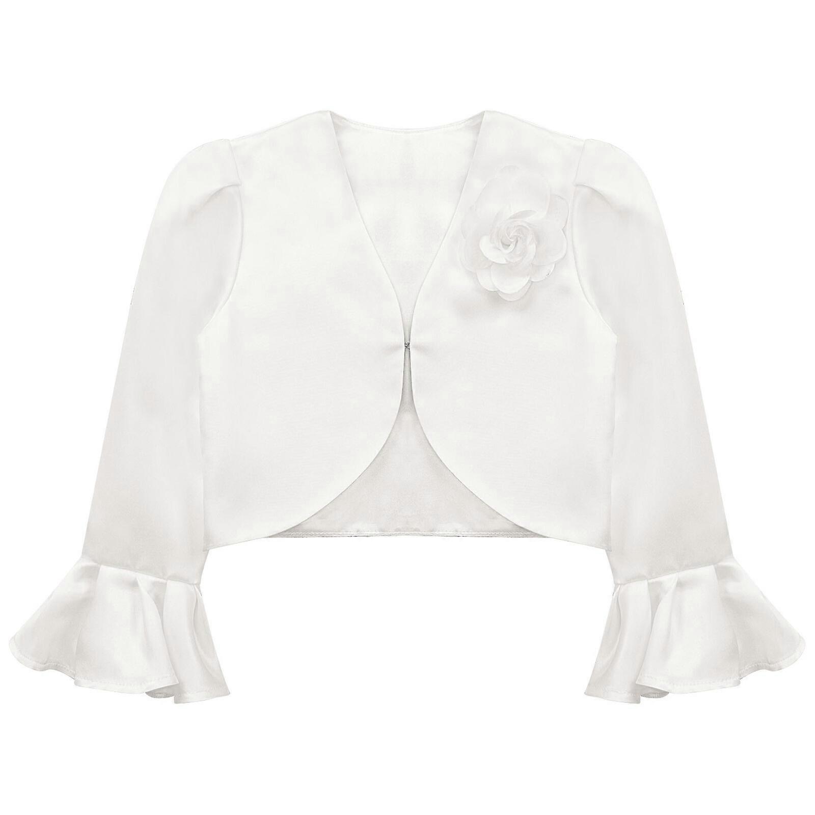 Kids Girls Epplique Satin Cardigan Long Flare Sleeve Curved Shrug Party Bolero