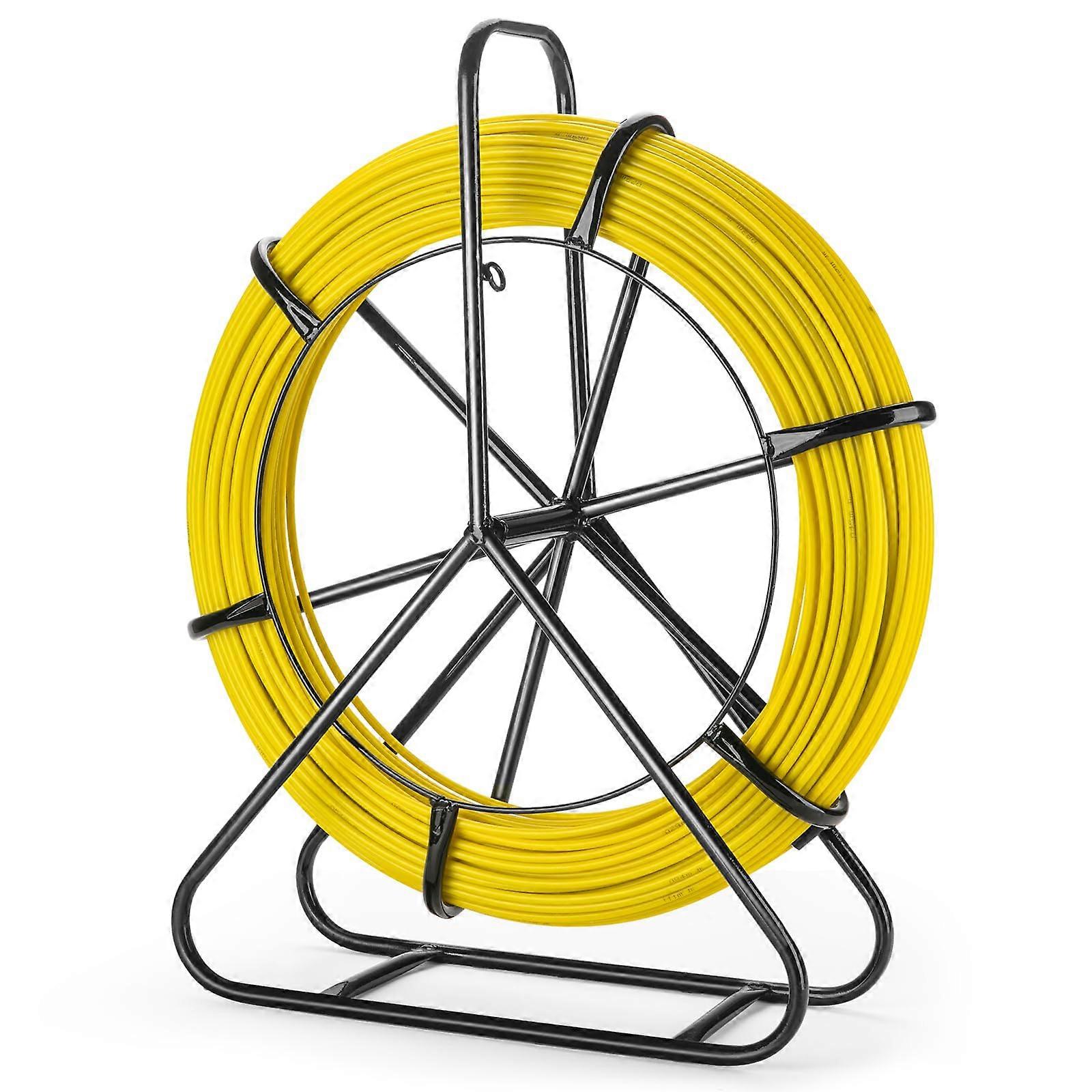 6mm x 200m Fiberglass Fish Tape with Steel Reel Stand, Heavy Duty Duct Rodder Cable Puller for Electrical Wiring