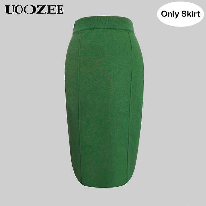 UOOZEE TikTok Exclusive Women's 2025 (Only Skirt) Solid Green Knitted Bodycon Skirt High Waist Slim Fit Knee Length Elegant Party Date Daily