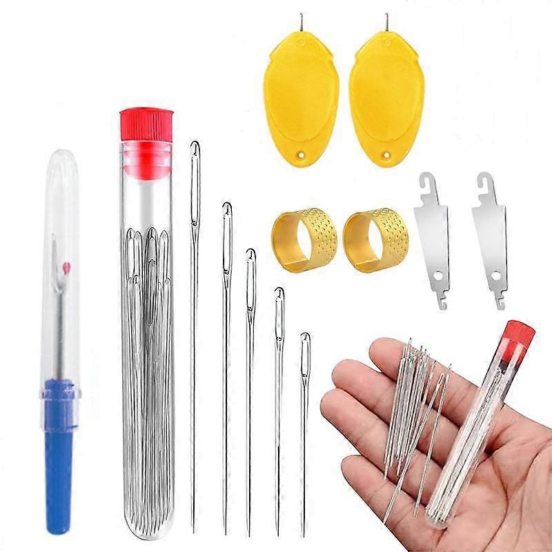 37PCS Big Eye Steel Needles Set - Long & Thin Handmade Quilting & Sewing Needles Kit for DIY Sewing Projects