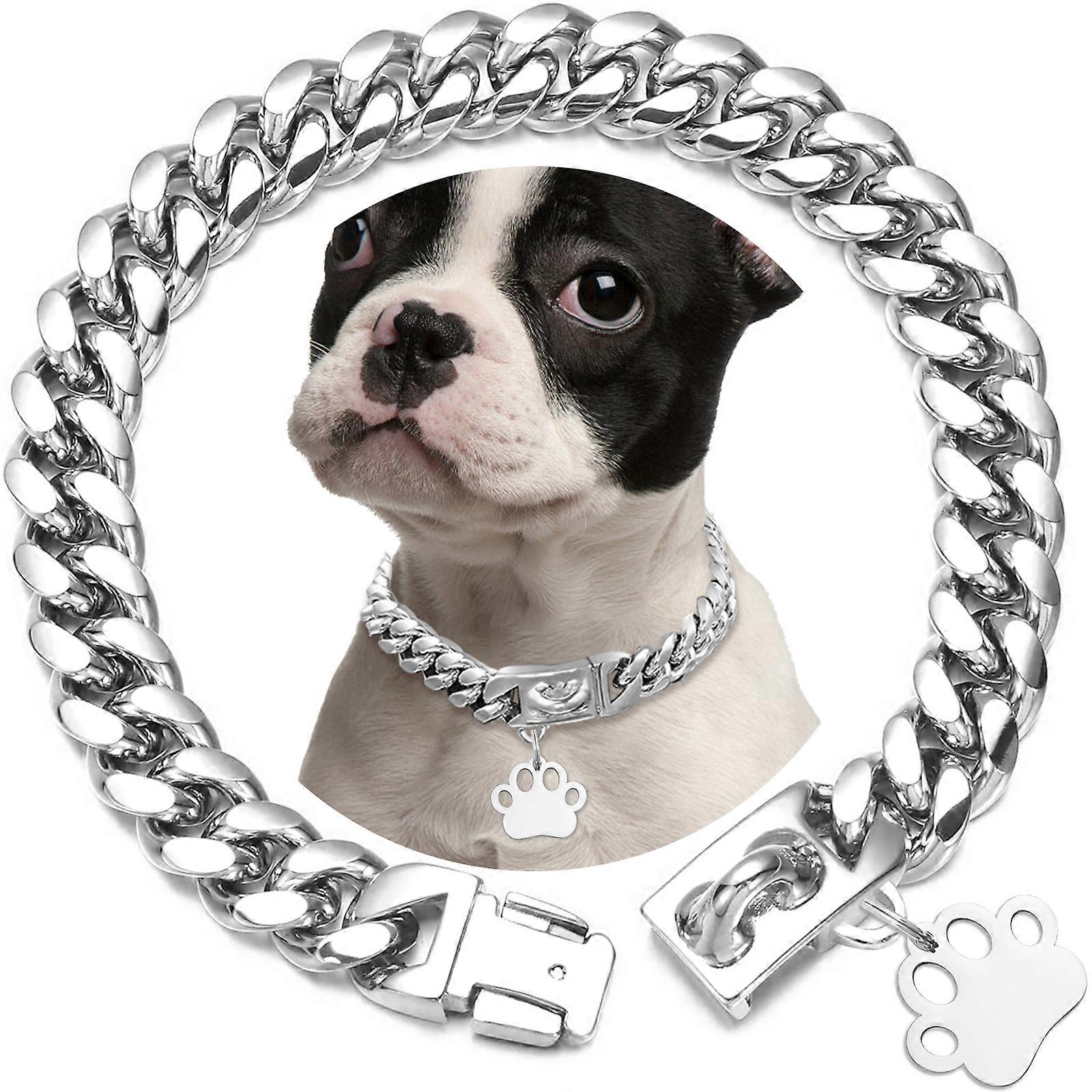 Strong Stainless Steel Dog Collar Choke with Safety Buckle Lock Golden Cuban Link Chain Training Collar for Pets Metal Necklace