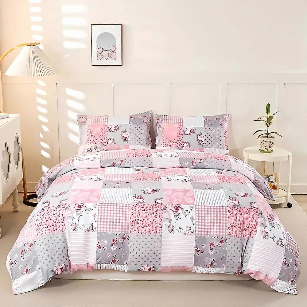 Dreamfields Soft Pink Plaid Quilt Cover Set (3Pcs Super King Size) Quilt Covers