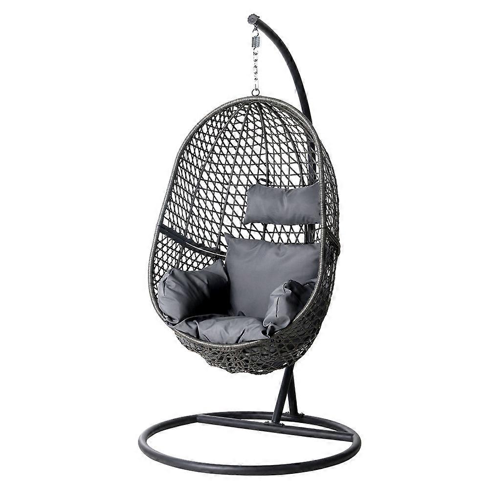 Gardeon Outdoor Egg Swing Chair Wicker Rattan Furniture Pod Stand Cushion Black Swing Seats