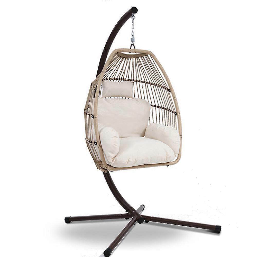 Gardeon Outdoor Egg Swing Chair Hanging Wicker Rope Pod Stand Cushion Latte Swing Seats