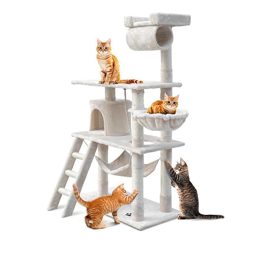 Spacious 141Cm Multi-Level Cat Tree Designed For Play Rest And Exploration Stable Construction For Long-Lasting Durability Natural Sisal-Wrapped Posts Encourage Healthy Scratching Habits Soft Plush Covering Provides Comfort For Lounging And Sleeping Multiple Play Zones Including Cradles A Cozy Bed Cube And Elevated Perches Side Hammock And Hanging Swing For Added Fun And Relaxation Sturdy Ladder With Sisal Rungs For Climbing Excitement All-In-One Design Supports Scratching Climbing Perching And Napping Specifications: