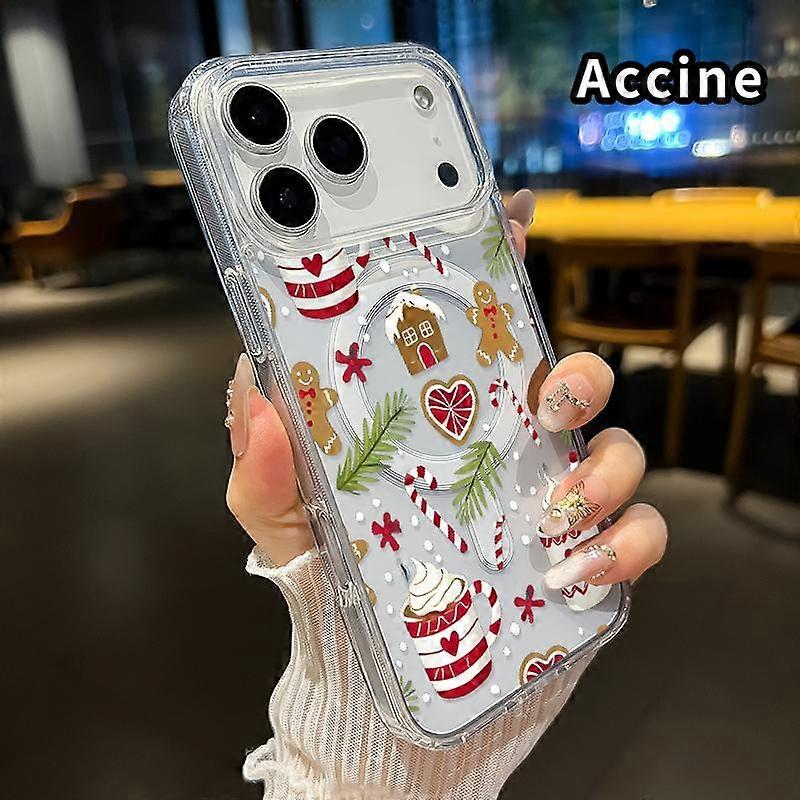 Clear Magnetic Case for iPhone 17 16 Pro Max Plus 15 14 13 12 11 Air E Christmas Ginger & Green pattern Hard Acrylic Back Soft Edge Bumper