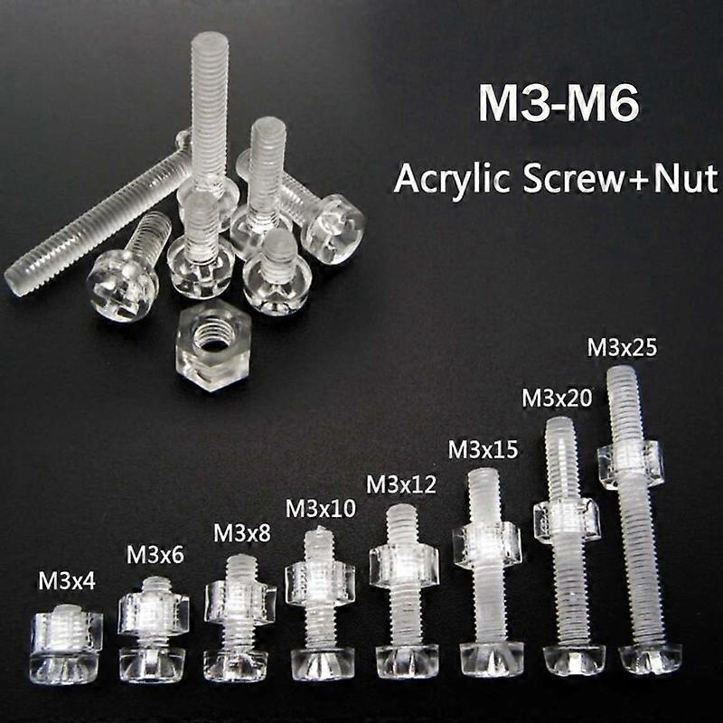 50sets Acrylic Clear Plastic Nylon M3-M6 Round Phillips Head Screw Bolt + Nut