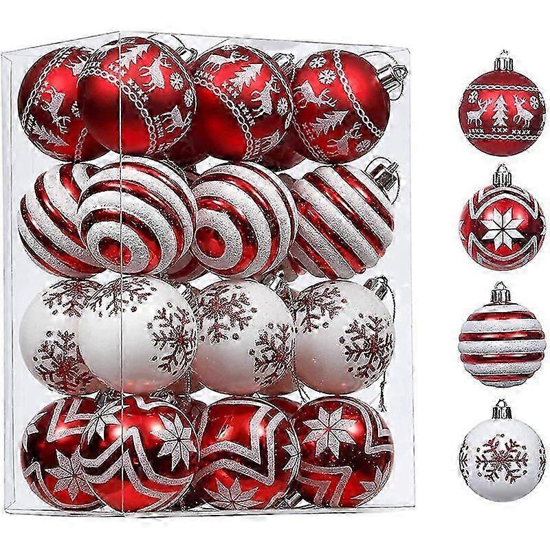 Christmas Tree Ornaments 24ct Red White Shatterproof Decorations