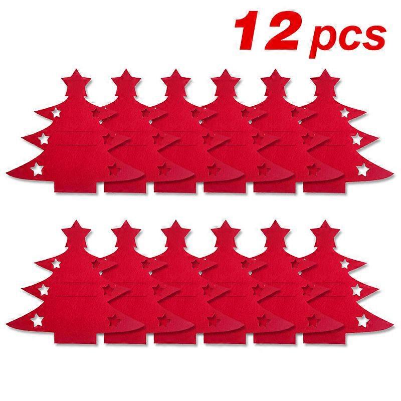 Christmass Tree Felt Silverware Holder Knife Fork Spoon Pouch Placemat Set Holiday Table Setting Decor for Xmas Dining Party