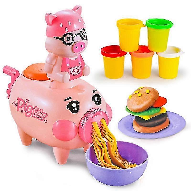 Children's Hamburger Noodles Pig Colored Clay Pretend Play Kitchen Utensils Pig Noodle Maker Early Education Toy