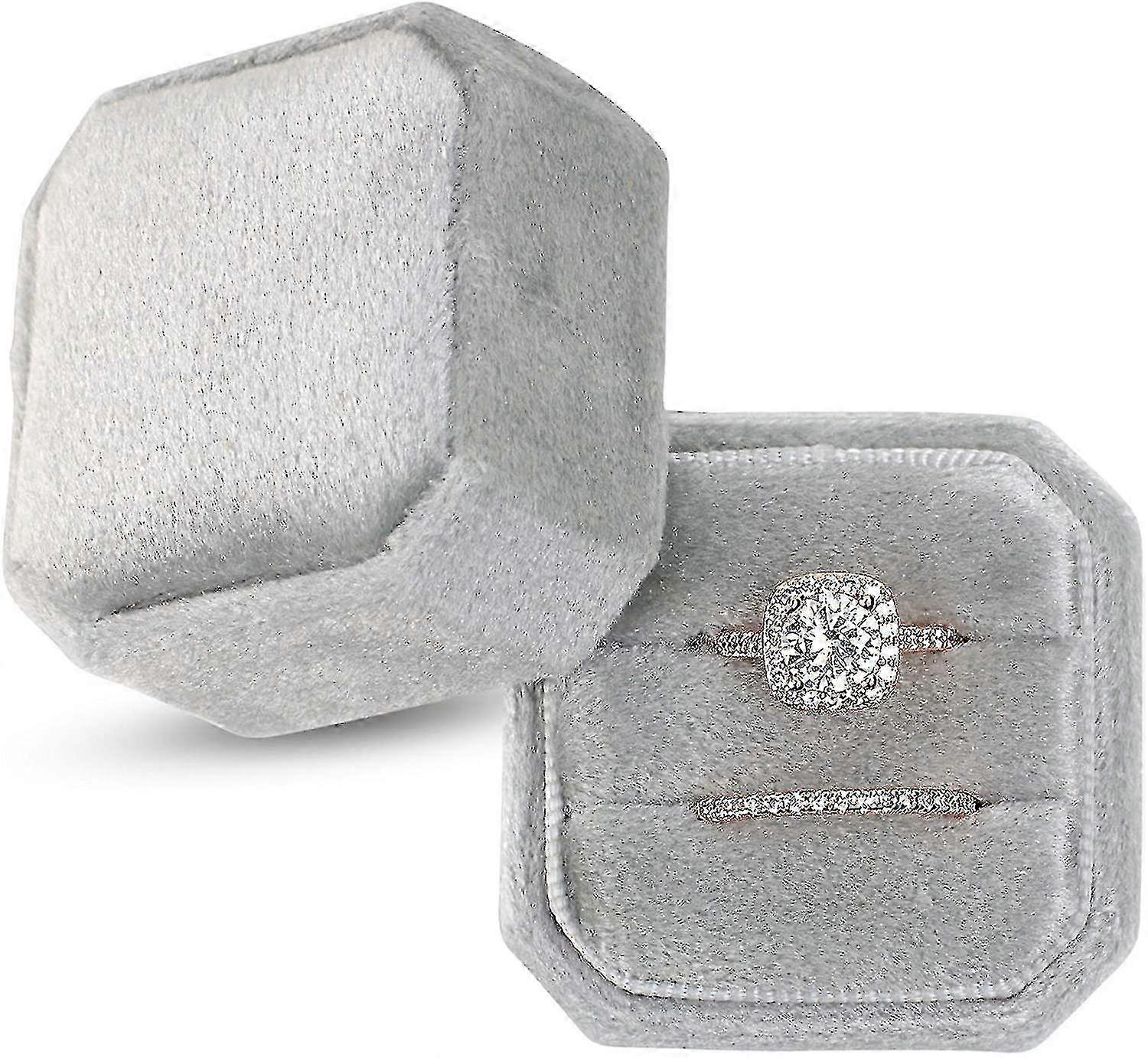 Velvet Double Groove Ring Box Vintage Square, Engagement Wedding Photo Bride Gift, Grey