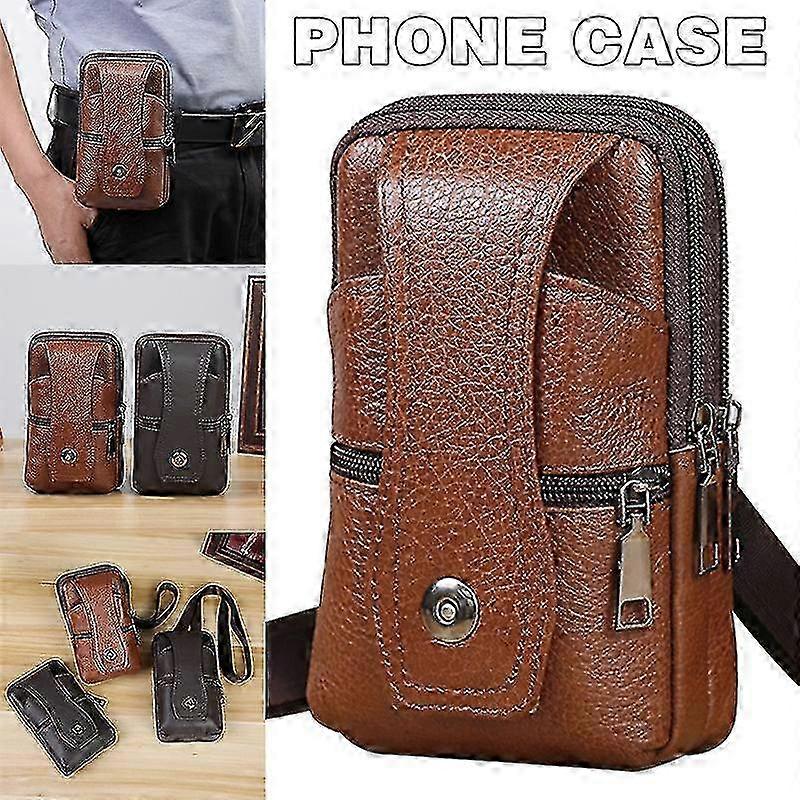 Genuine leather phone case, smartphone belt loop pocket, men's belt clip, Coffee