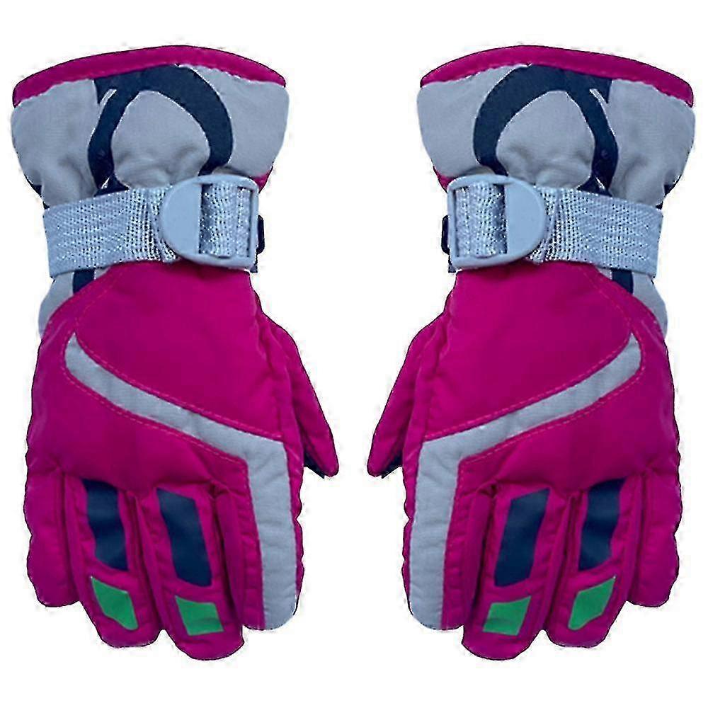 Children's winter ski gloves, waterproof snowboard gloves, boys' and girls' warm snow gloves, Rose red