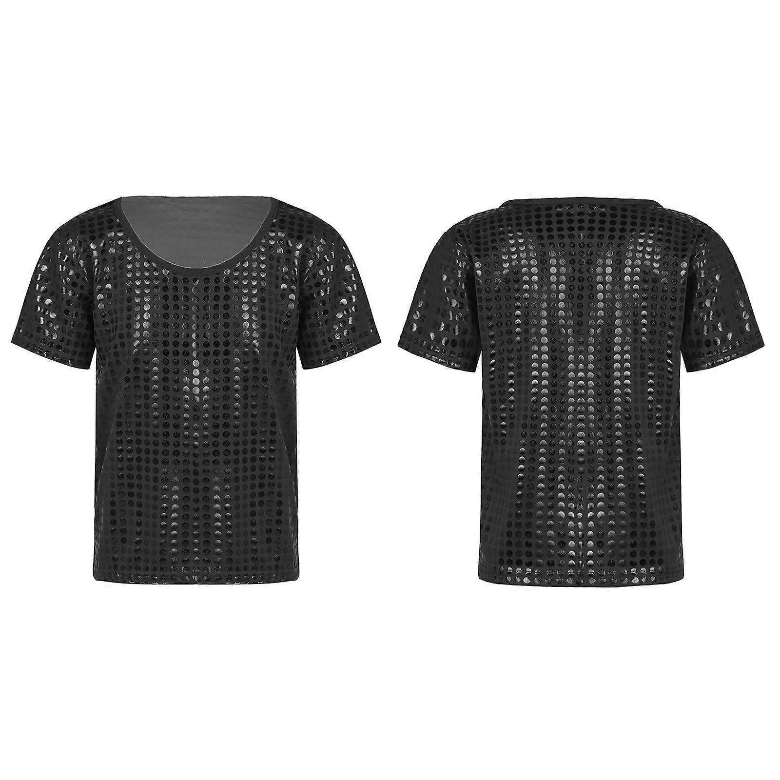 Girls Boys Shiny Sequin Short Sleeve T-Shirt Sparkle Jazz Hip Hop Dance Tops