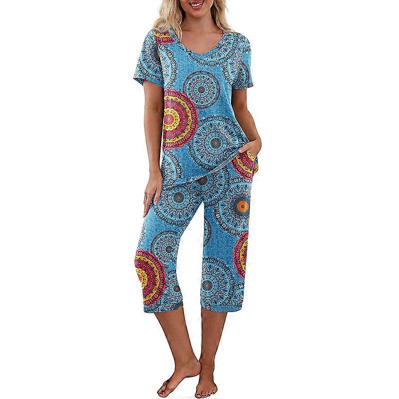 Two Piece Women'S Multi-Color Comfortable Home Casual Pajama Set With Printed Long Sleeves And Long Pants Pajamas Women'S Sexy V