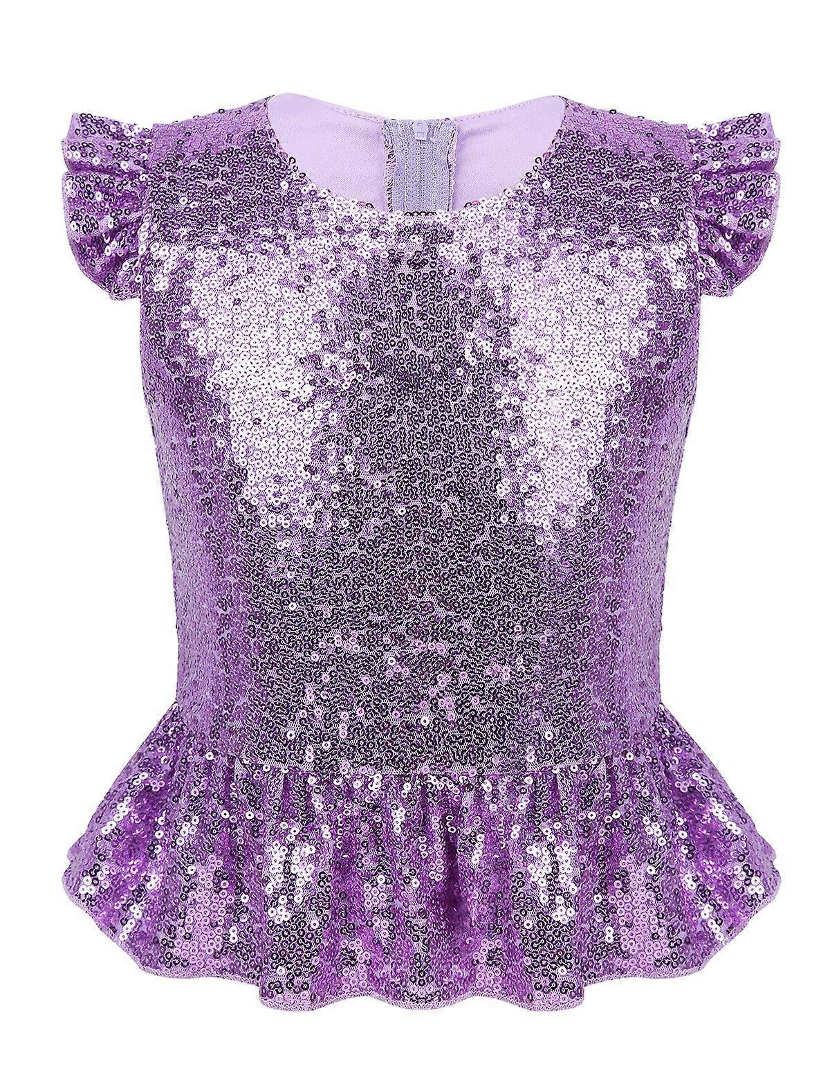 Kids Girls Sequins Ruffled Sleeves Tee Shirt Crop Tops Mermaid Birthday Dress up