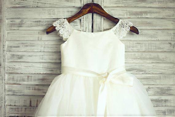 Lace Tulle Cap Sleeves TUTU Flower Girl Dress Wedding Easter Junior Bridesmaid