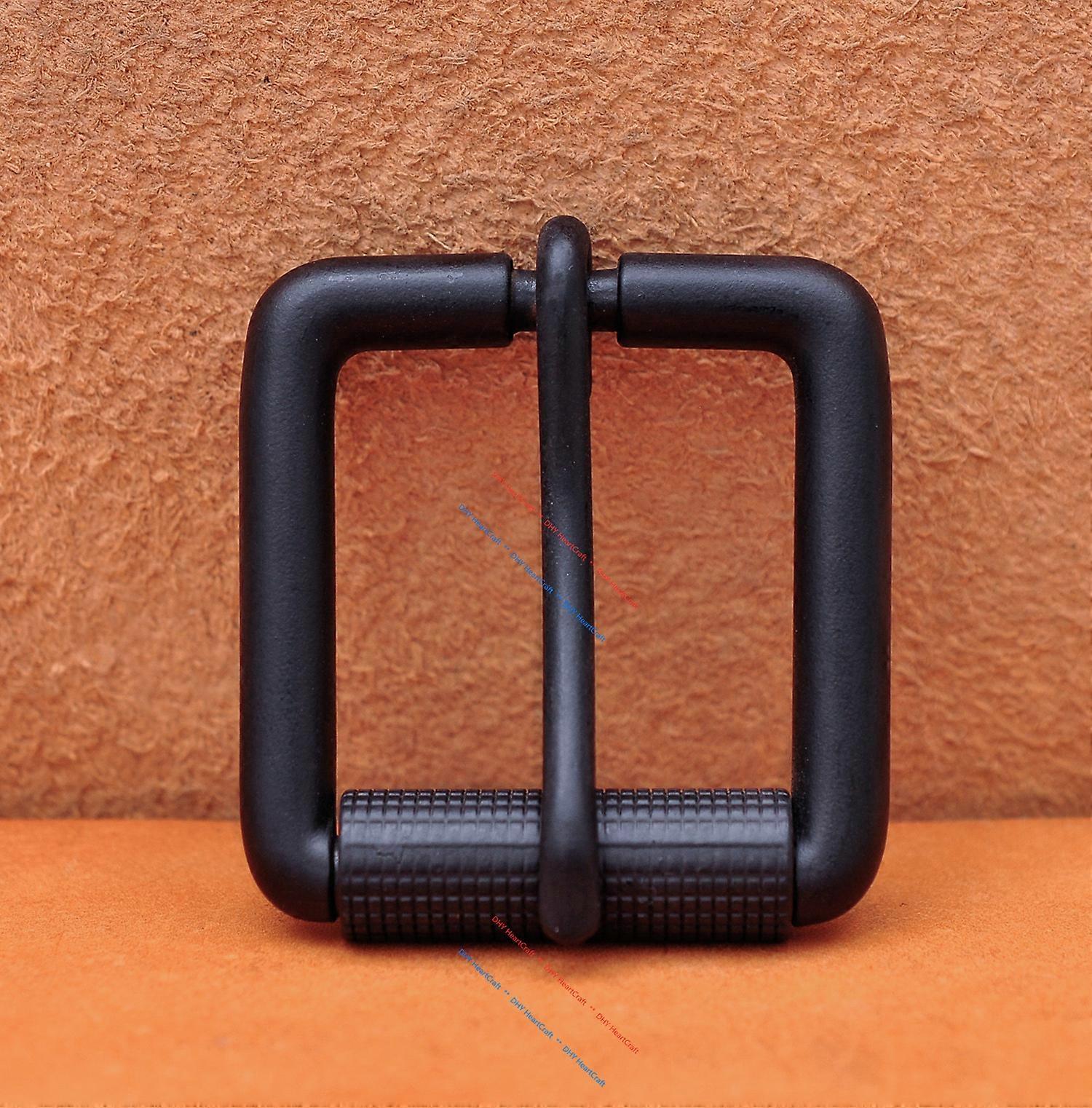Men Black Rectangular Single Prong Roller Pin Buckle Fit Leather Belt 34MM
