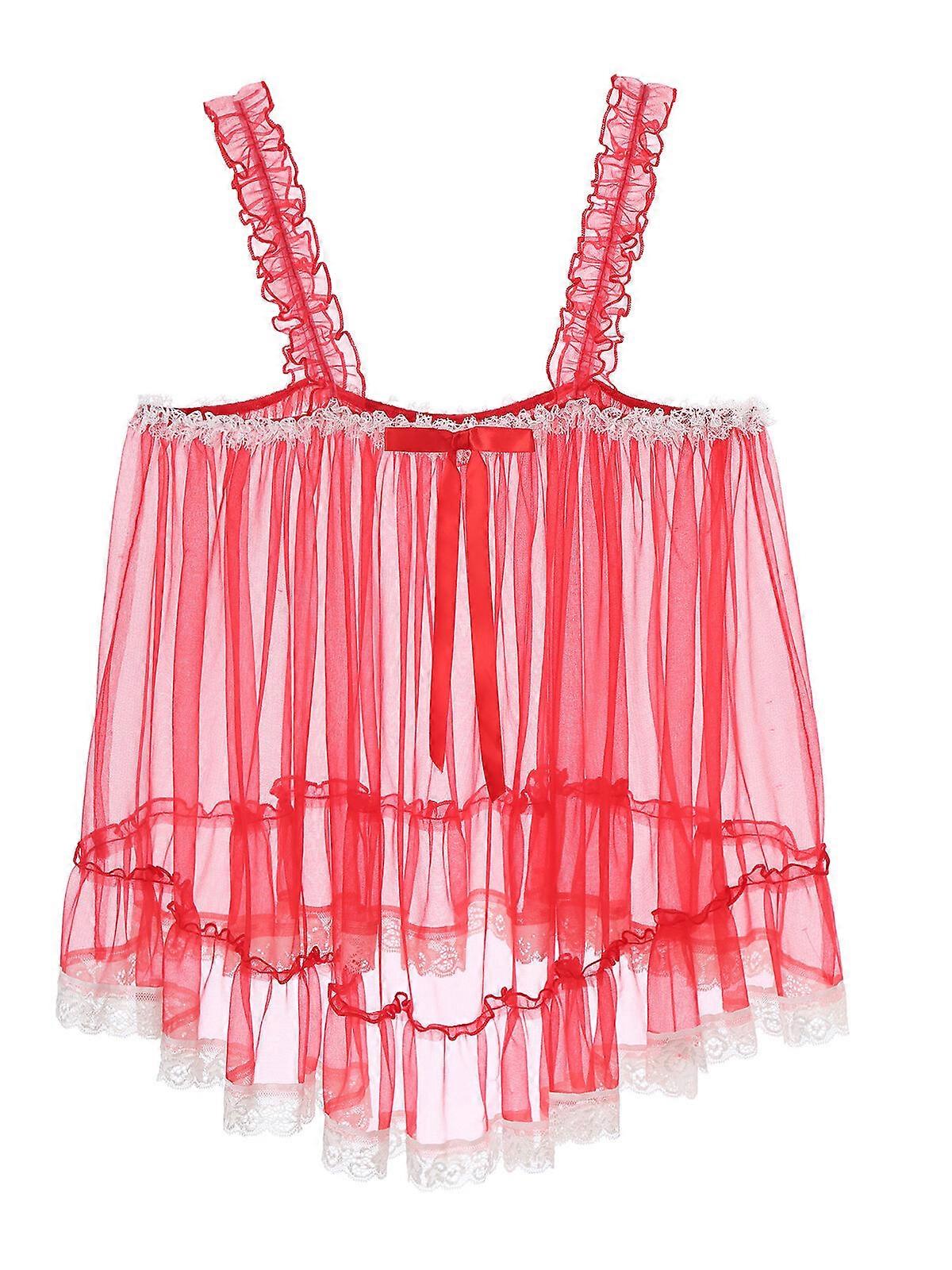 Men Sissy Lace Ruffled Straps Camisole Undershirt Tank Top Crossdress Nightgown