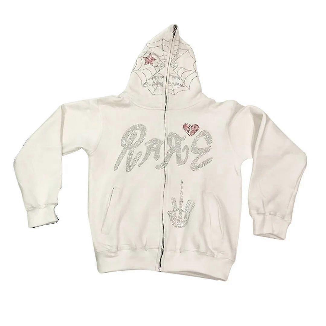 Cross border autumn and winter Y2K trendy rhinestone finger drill hooded cardigan jacket for men and women in Europe and America