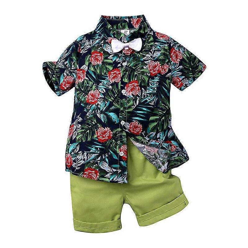 2pcs Toddler Baby Boys Outfits Floral Shirt Tops +Shorts Gentleman Clothes Set