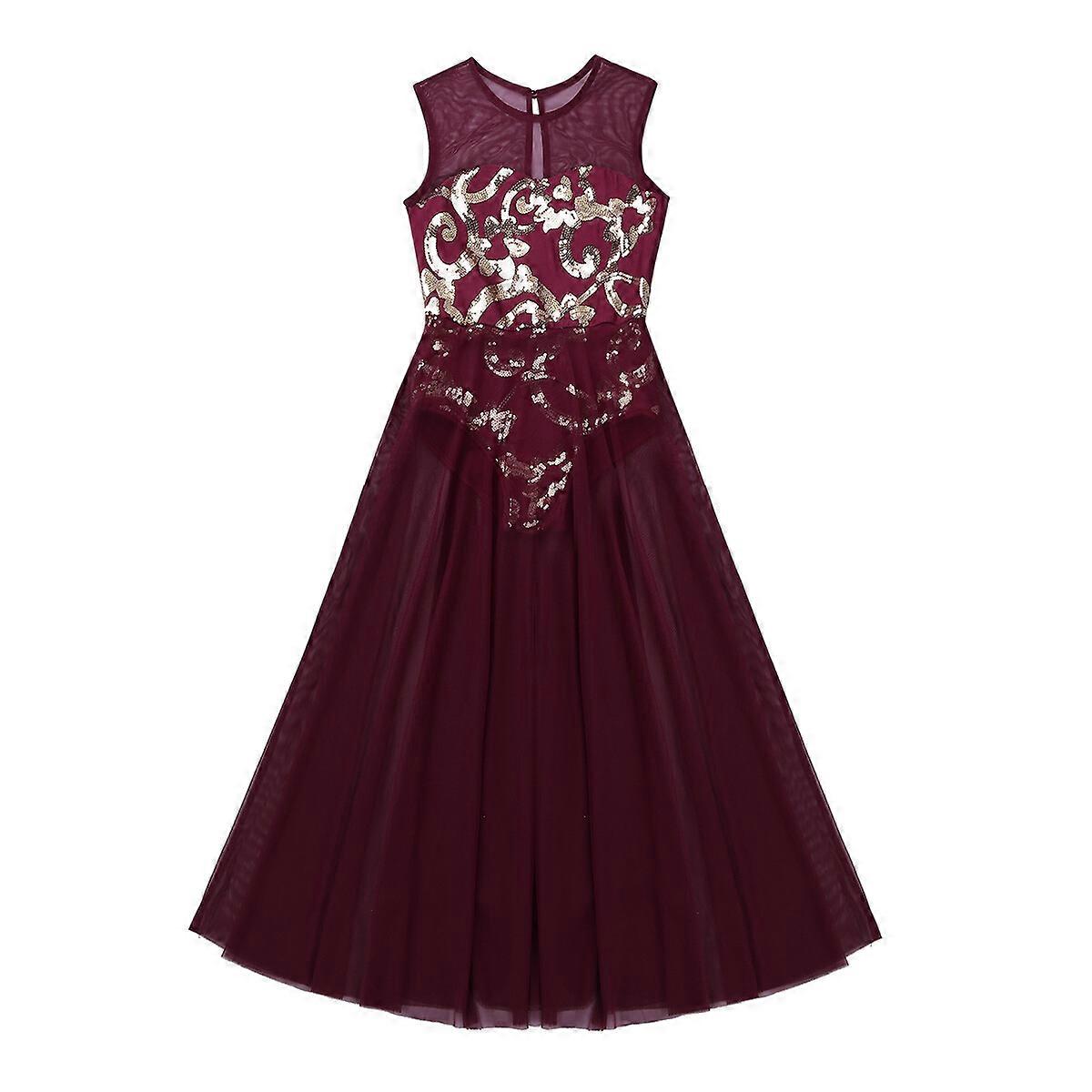 Kids Girls Sequined Ballet Lyrical Leotards Mesh Splice Dress Latin Dancewear