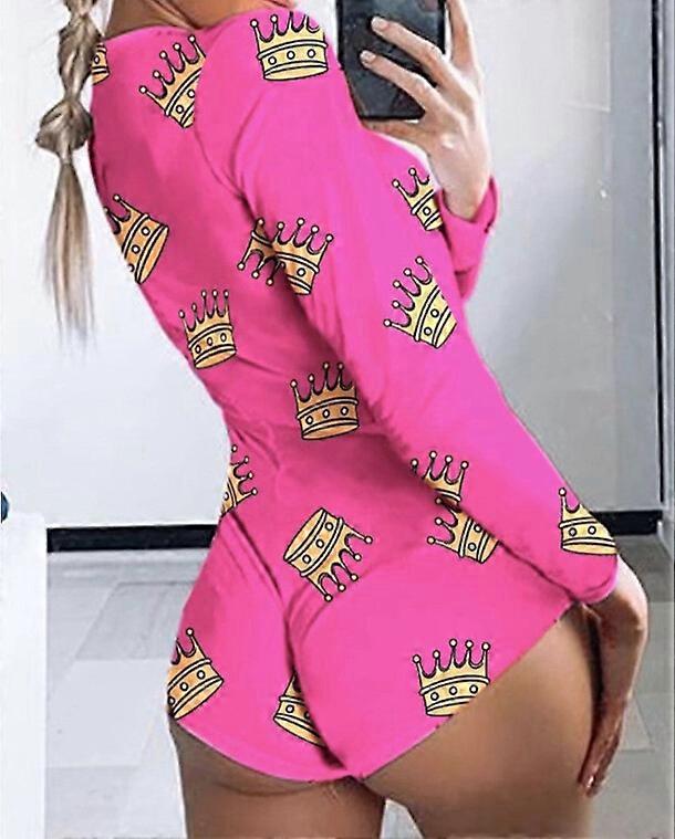 Women Printed Long Sleeve Sexy Bodysuit Pajamas Ladies Jumpsuit Sleepwear Romper