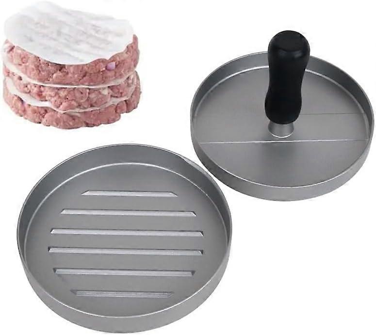 This hamburger patty press, a charming little tool hidden away on the kitchen counter, adds a touch of refined ritual to the making of homemade burgers. Its shape is square yet rounded, without any sharp edges, and feels substantial in the hand. Whether it's the cool stainless steel version or the one with a warm, matte food-grade coating, the surface is finely polished and smooth to the touch, revealing the craftsmanship in every detail. The edges of the mold have been repeatedly adjusted, with a uniform and moderate thickness – neither too thin to easily deform nor too thick to be clumsy. Standing on the kitchen counter, it complements the cutting board and knives, a refined supporting character in the kitchen. Its color scheme is simple and versatile, either classic silver-gray or low-saturation black and light gray, blending seamlessly into industrial-style open kitchens and complementing the soft tones of cozy kitchen cabinets. Every detail reflects a thoughtful approach to everyday cooking; the curved handle fits comfortably in the hand, and the depth of the groove at the bottom is just right, easily shaping patties of uniform thickness. Even when simply stored in a storage box or hung on a wall hook, it exudes a neat and elegant aesthetic. When the meat mixture meets this press, a gentle press is all it takes to create uniformly sized patties, laying the perfect foundation for the sizzling deliciousness on the baking sheet, adding a touch of ease and sophistication to the making of homemade burgers.Non-Stick Aluminum Burger Press, Burger Press Machine, Hamburger Patty Maker with 100 Wax Disc Papers, Burger Maker with ABS Handle, for Making Stuffed Pocket Burgers Baking Beef Grill BBQ