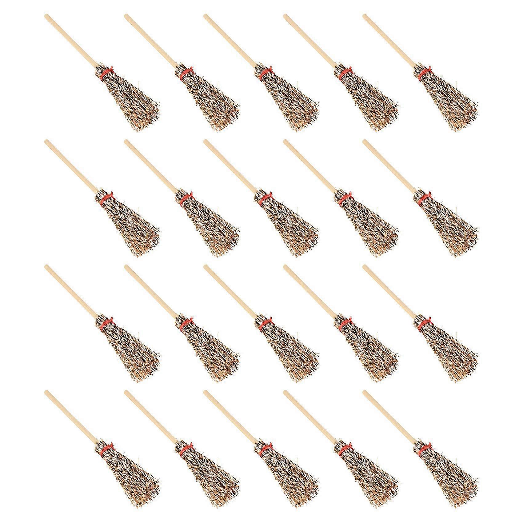 20Pcs of a Miniature Artificial Mini Straw Broom Toy with Red Ropes, great for a Halloween Dollhouse or a Witches Party Decor item.