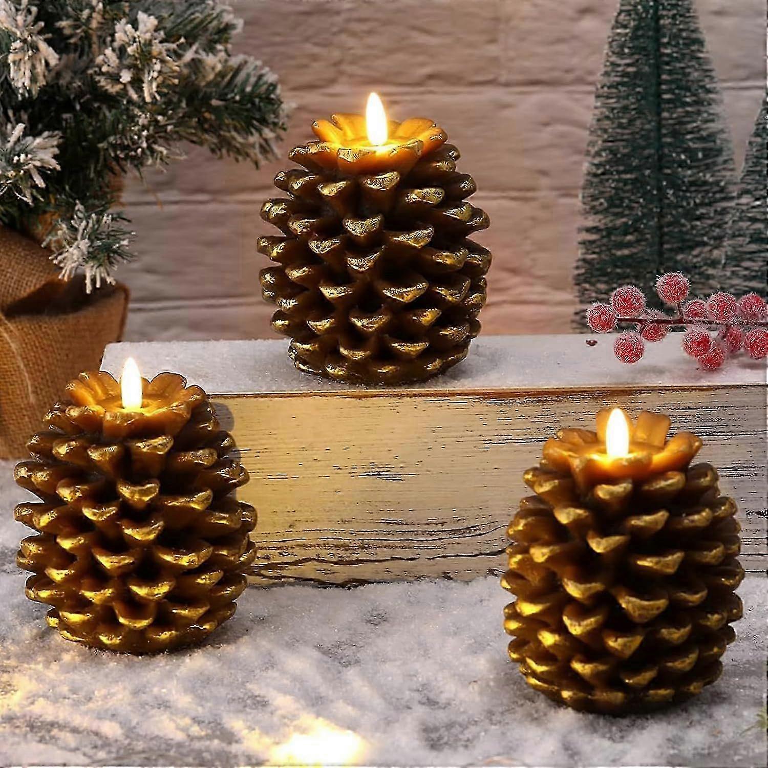 A Set of LED Flameless Pine Cones Candles - 3D Pine Cones Flameless LED Battery Operated Candles for Autumn Decoration and Christmas